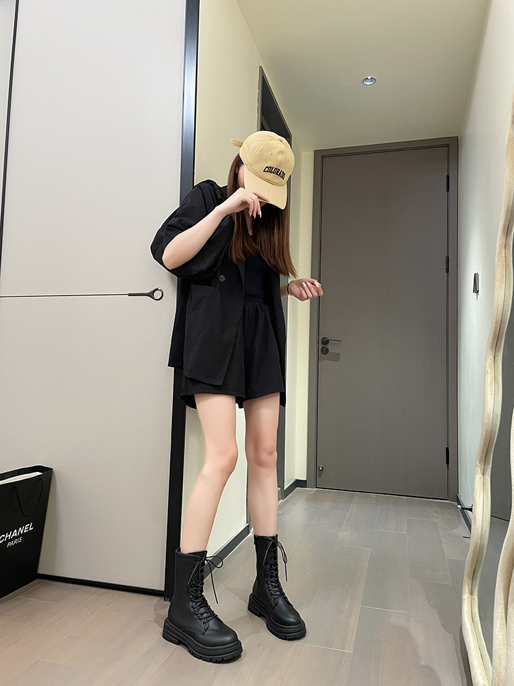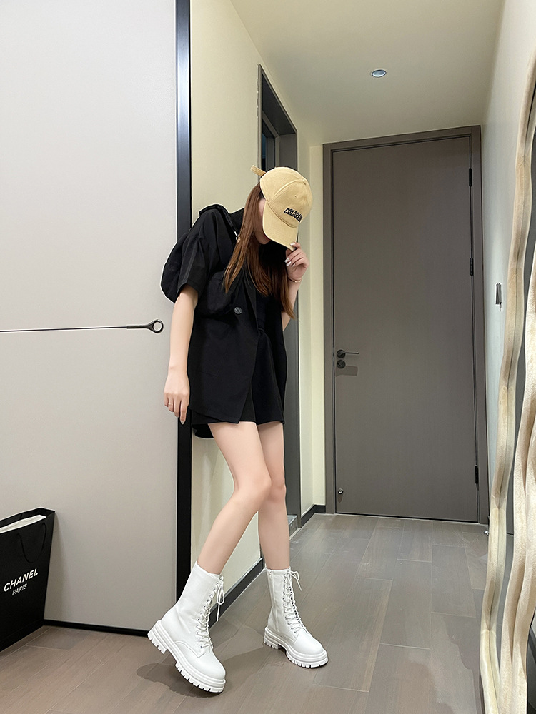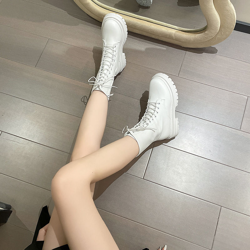 Autumn And Winter New Round Head Lace-up British Style Thick Bottom Mid-calf Martin Boots Women