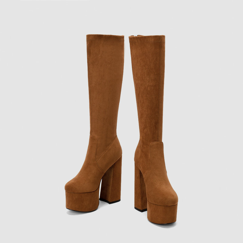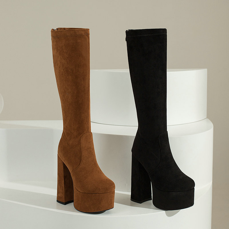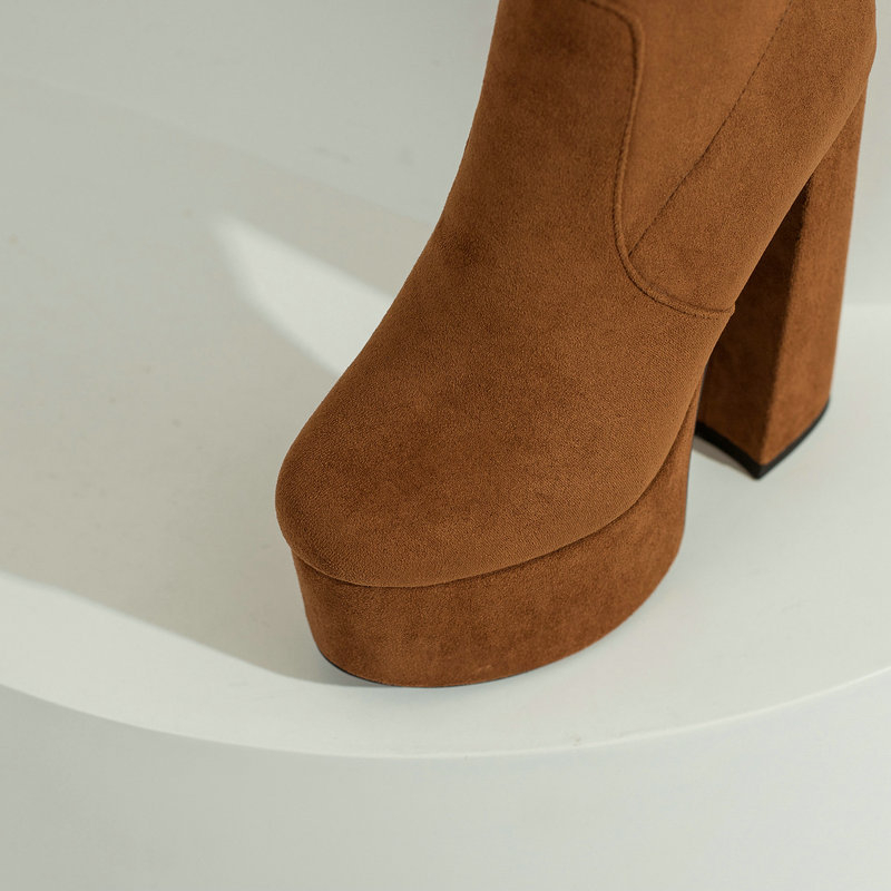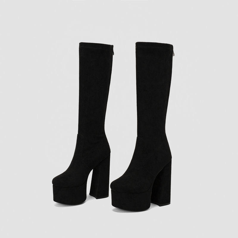 Elastic Wool Chunky Heel Women's Boots